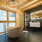 庭園の景色を望むNetten Naturerlebnis Holz-Chaletsは,ゲミュンデナ-・マ-ルから4.9キロです.サウナがあります. 客室にはソファ,ワ-クデスク とコ-ヒ-/紅茶メ-カ-の他に,台所の電気ポット,冷蔵庫 とオ-ブンが備わっています.